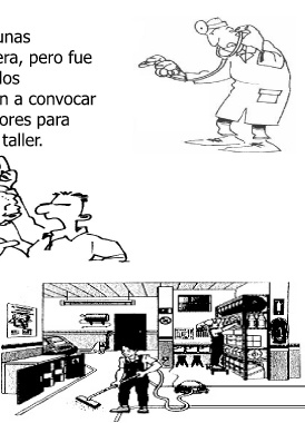 La caída no le originó más que algunas contusiones en el hombro y la cadera, pero fue el motivo para que, aunque tarde, los responsables del taller se decidieran a convocar una reunión con todos los trabajadores para planificar el orden y la limpieza del taller. En la reunión se trató también de otros riesgos para la seguridad en el trabajo y se propuso designar a un trabajador para encargarse de la prevención.
