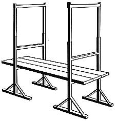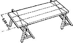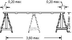 Si se emplearan tablones estandarizados de 4 m. de longitud, que son apropiados para una separación entre caballetes de 3,60 m., se deberá disponer un tercer caballete intermedio entre ambos, sobresaliendo por lo tanto los tablones 20 cm. a ambos extremos de los apoyos de las borriquetas.
