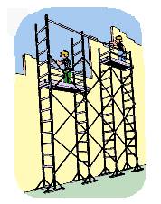 Echafaudages sur trétaux.