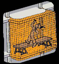Una serie de tablas dispuestas horizontalmente a modo de barandillas, o bien mediante una red vertical. Soluciones idénticas a las citadas anteriormente, pero en este caso dicha protección se deberá disponer en todo el perímetro de la abertura por donde existiera riesgo de caída.