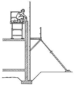 Fig. 8: Plataforma de trabajo a más de dos metros de altura | Fig. 9: Andamio situado en voladizo | Fig. 10: Apoyo incorrecto del andamio de borriquetas en andamio colgado |