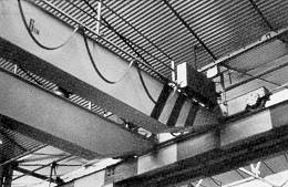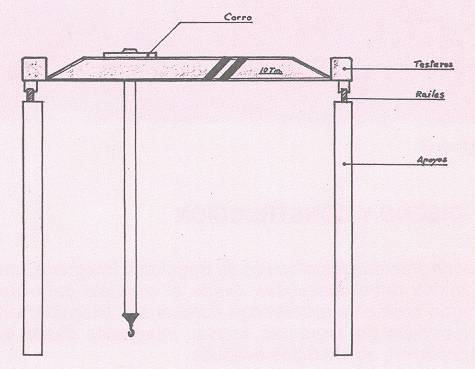 A diferencia de las grúas-pórtico, los raíles de desplazamiento están aproximadamente en el mismo plano horizontal que el carro y su altura determina la altura máxima operativa de la máquina. (Fig. 2)