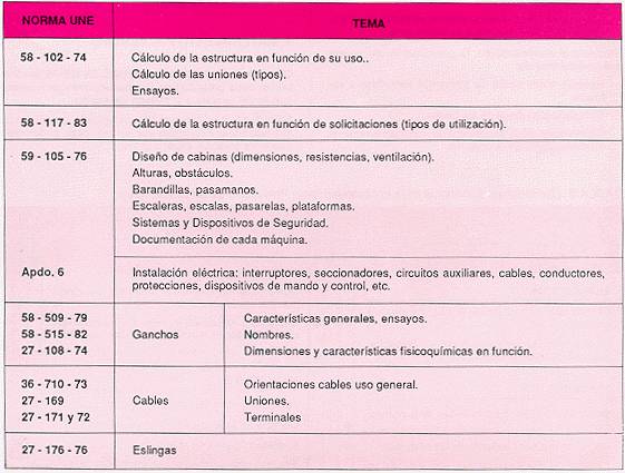 Tabla 1: Principales normas UNE aplicables a los puentes-grúa