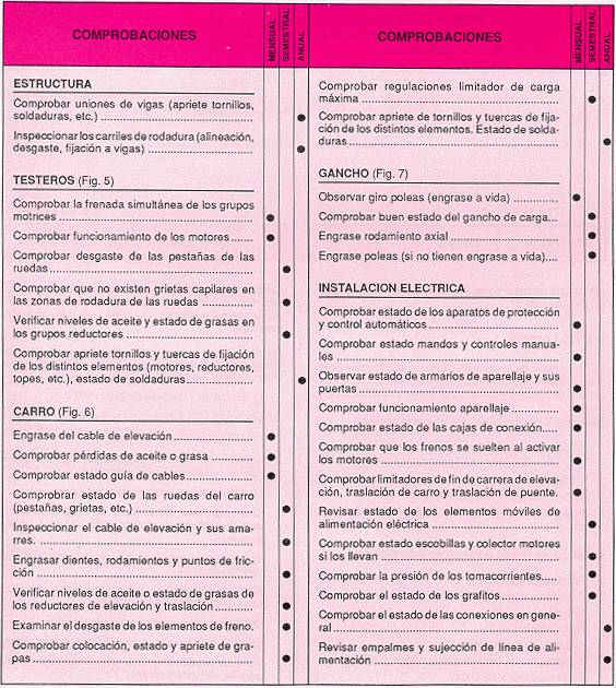 Tabla 2: Operaciones esenciales para el Mantenimiento Preventivo de un puente-grúa