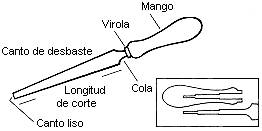 Las partes principales de una lima son los cantos, cola, virola y mango. (Fig. 1)
