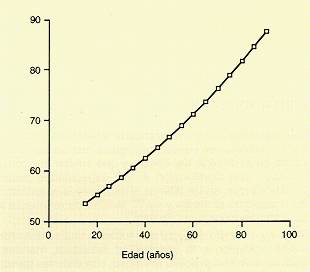 La figura 3 muestra esta ecuación y la figura 4 muestra los niveles que cabe esperar para distintas edades.
