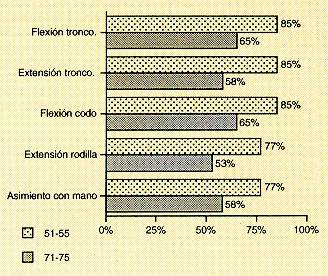 Se produce con la edad una disminución, además de la cantidad de fuerza que puede ejercerse cuando se sujeta algo con la mano, en la duración de los asimientos, es decir, en el tiempo durante el que es posible mantener esa misma presión (figura 7).