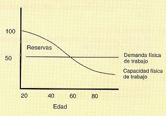 Actualmente, un problema importante es que las demandas de trabajo no varían en función de la edad del trabajador. A pesar de que la capacidad funcional para el trabajo decrece con la edad, las propias demandas del trabajo no lo hacen. Las reservas funcionales declinan con la edad, y más allá de los cincuenta años, en trabajos con demandas físicas exigentes, las reservas no son suficientes para que se produzca una recuperación satisfactoria antes del siguiente día de trabajo.