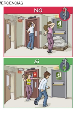 FICHA 12: EMERGENCIAS En cualquier centro de trabajo puede ocurrir una emergencia, como por ejemplo un incendio. ¿Qué debes hacer en caso de emergencia? -Cuando empieces en un nuevo centro de trabajo pregunta: Dónde están las salidas de emergencia. Quién es la persona responsable de evacuación. Qué normas hay en caso de emergencia. -En caso de escuchar la señal de emergencia o que alguien te avise de que debes salir del centro de trabajo, sigue las normas de evacuación. - Si no te han dado normas, haz lo siguiente: Intenta estar tranquilo. No uses los ascensores o montacargas. Dirígete a la salida de emergencia que tengas más cerca. Una vez fuera del edificio, espera instrucciones. No vuelvas al trabajo hasta que no te lo digan. -Si ves un fuego, ve a un lugar seguro y avisa a las personas que tengas más cerca.